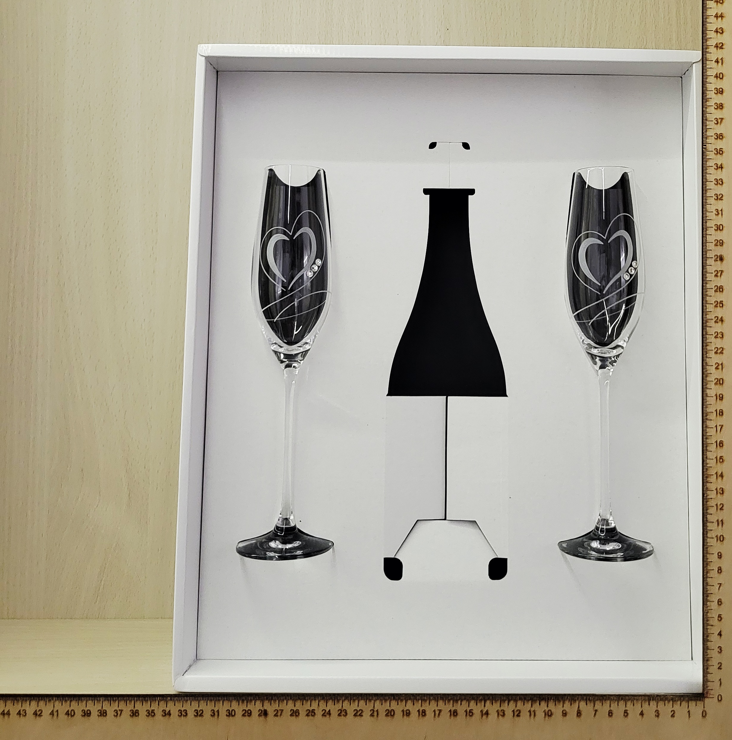 Pezsgős pohár 2db-os 2x210ml, kristállyal díszített, pezsgőnek kialakított hellyel ( szíves)